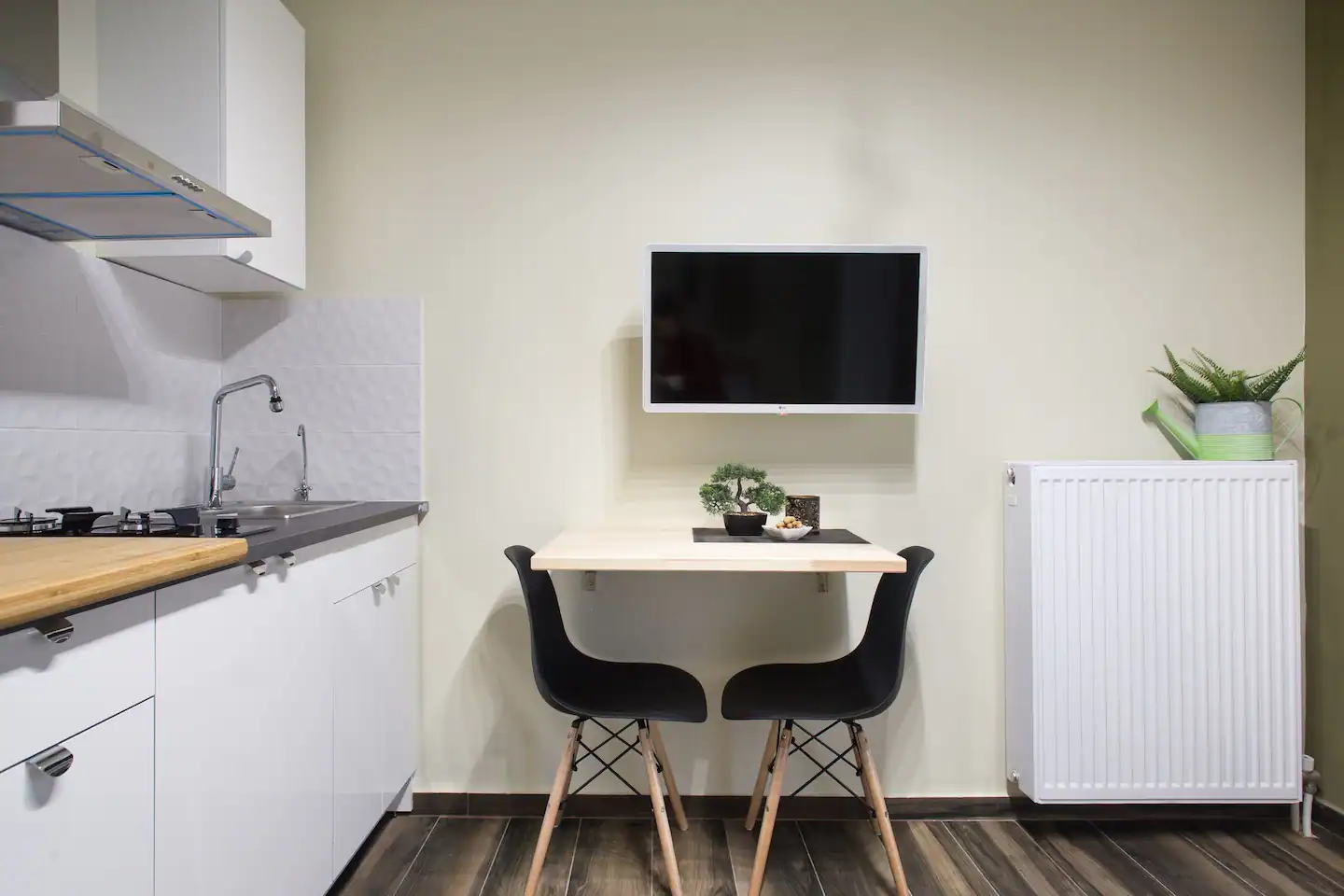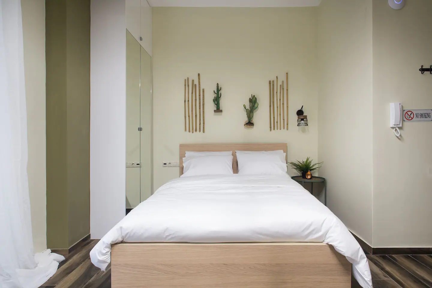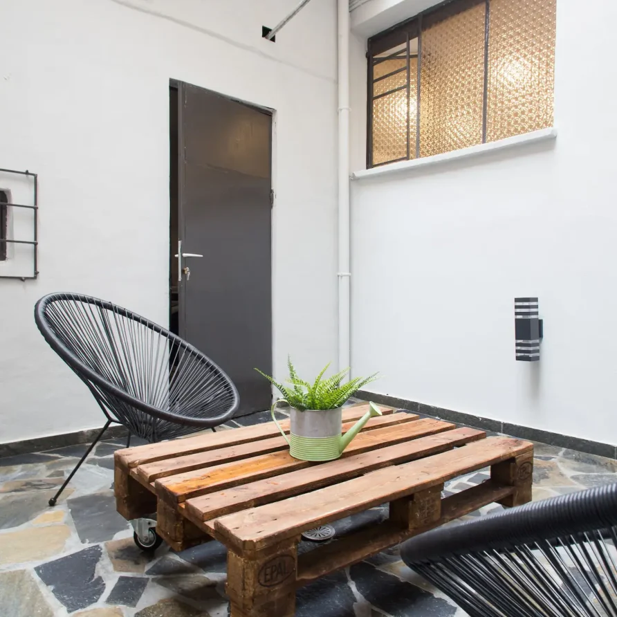 - Amenities: 32" HDTV with Netflix, Clothes Storage: Wardrobe, Coffee maker: Nespresso, Cot – Available Upon Request, Essentials, Free On-Street Parking, Freezer, Fridge, Hair Dryer, Hangers, High Chair – Available Upon Request, Hot Water, Iron, Kettle, Lockbox, Long-Term Stays Allowed, Luggage Drop-off Allowed, Microwave, Paid Car Park Off Premises, Room-darkening Blinds, Self Check-In, Shampoo, Shared Terrace, Shower Gel, Wi-Fi, Window AC Unit, Wine Glasses