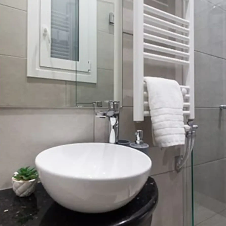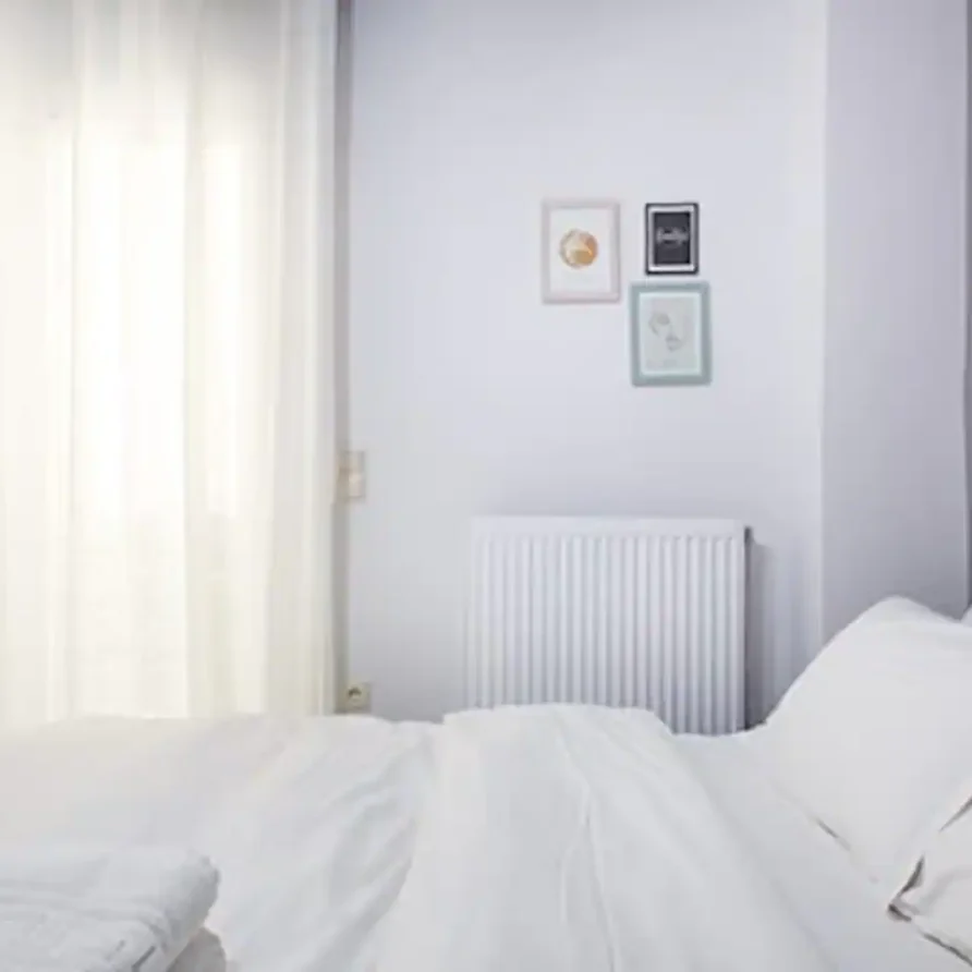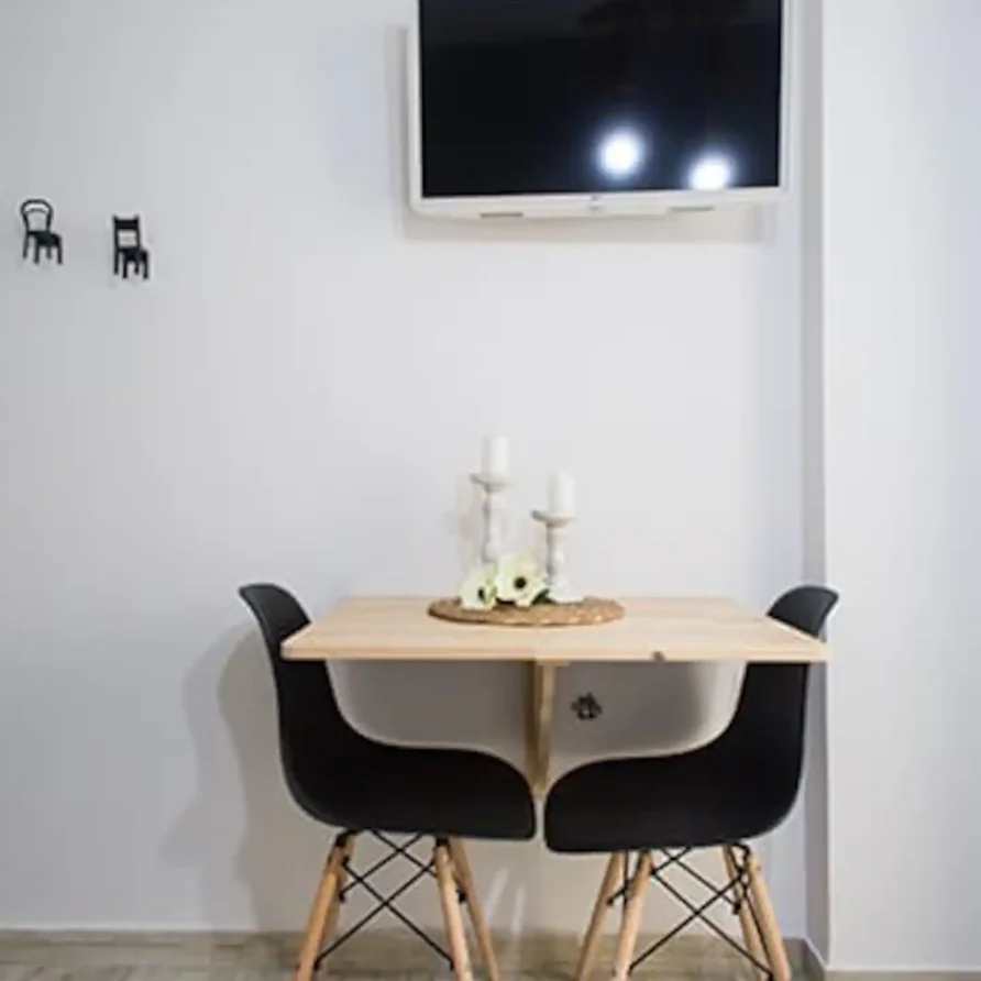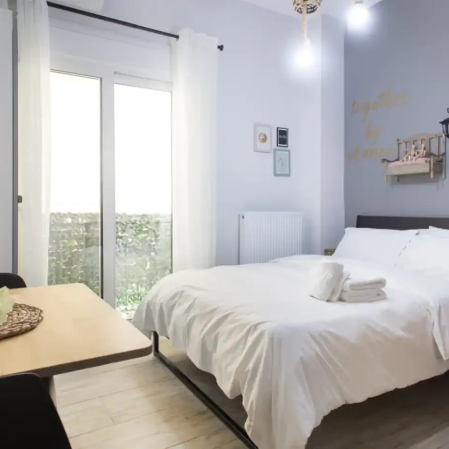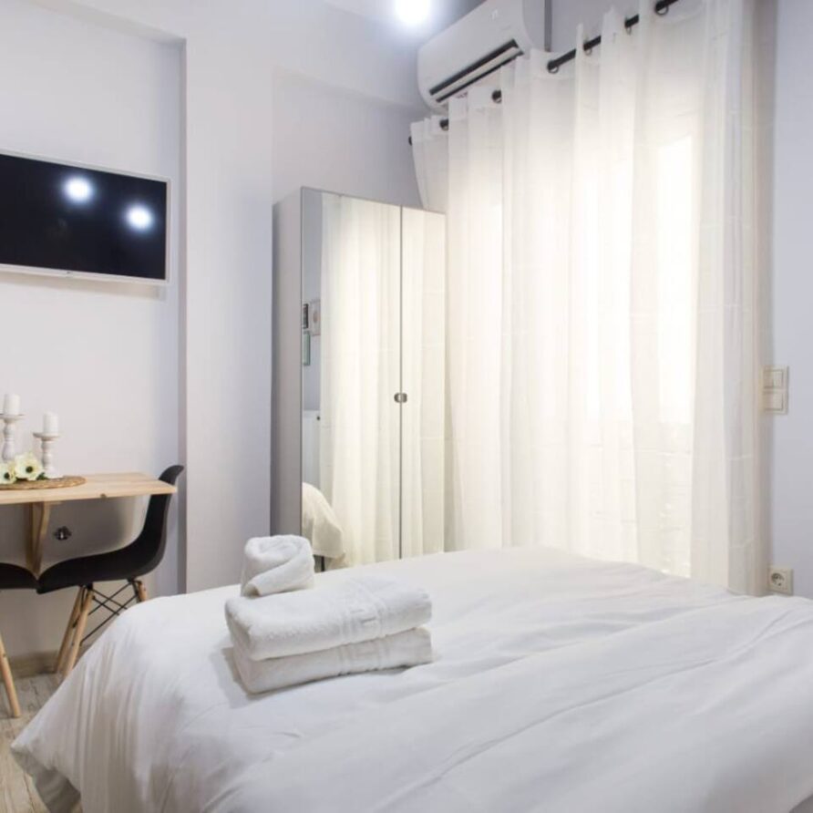 The bathroom has 24h hot water, a 2in1 shampoo/shower gel combo, hand soap, 1 bath towel and 1 guest towel per person. The kitchen includes a fridge/freezer, a microwave and gas hobs. Also included will be a starter pack of Greek coffee powder, sugar, salt, pepper and olive oil. In the summer months, blankets are not provided. Instead, we provide a sheet covering. This is common practice in Greece during the summer. The flat is equipped with A/C and a thermostat. In the wardrobe you ‘ll find hangers, an iron and a hair dryer. We have tested the WiFi 🛜 to a confirmed speed of up to 10Mbps.