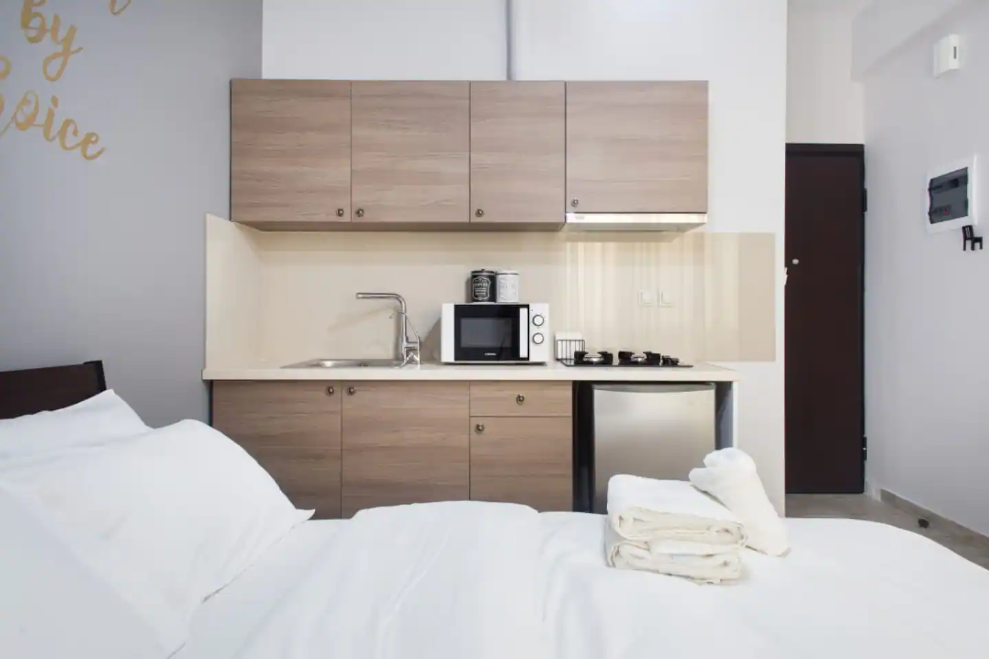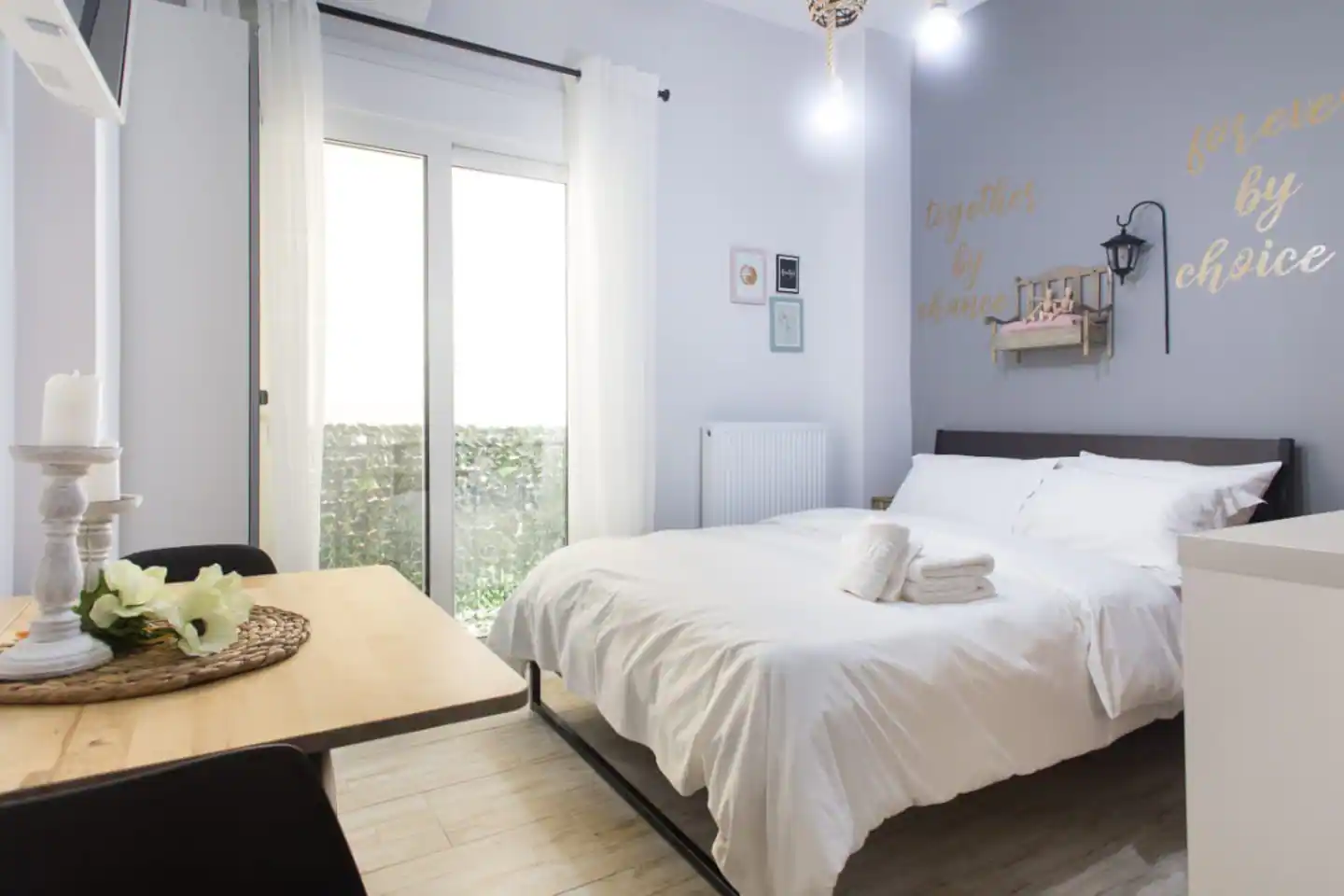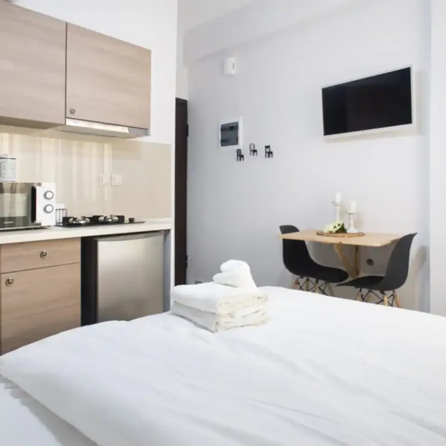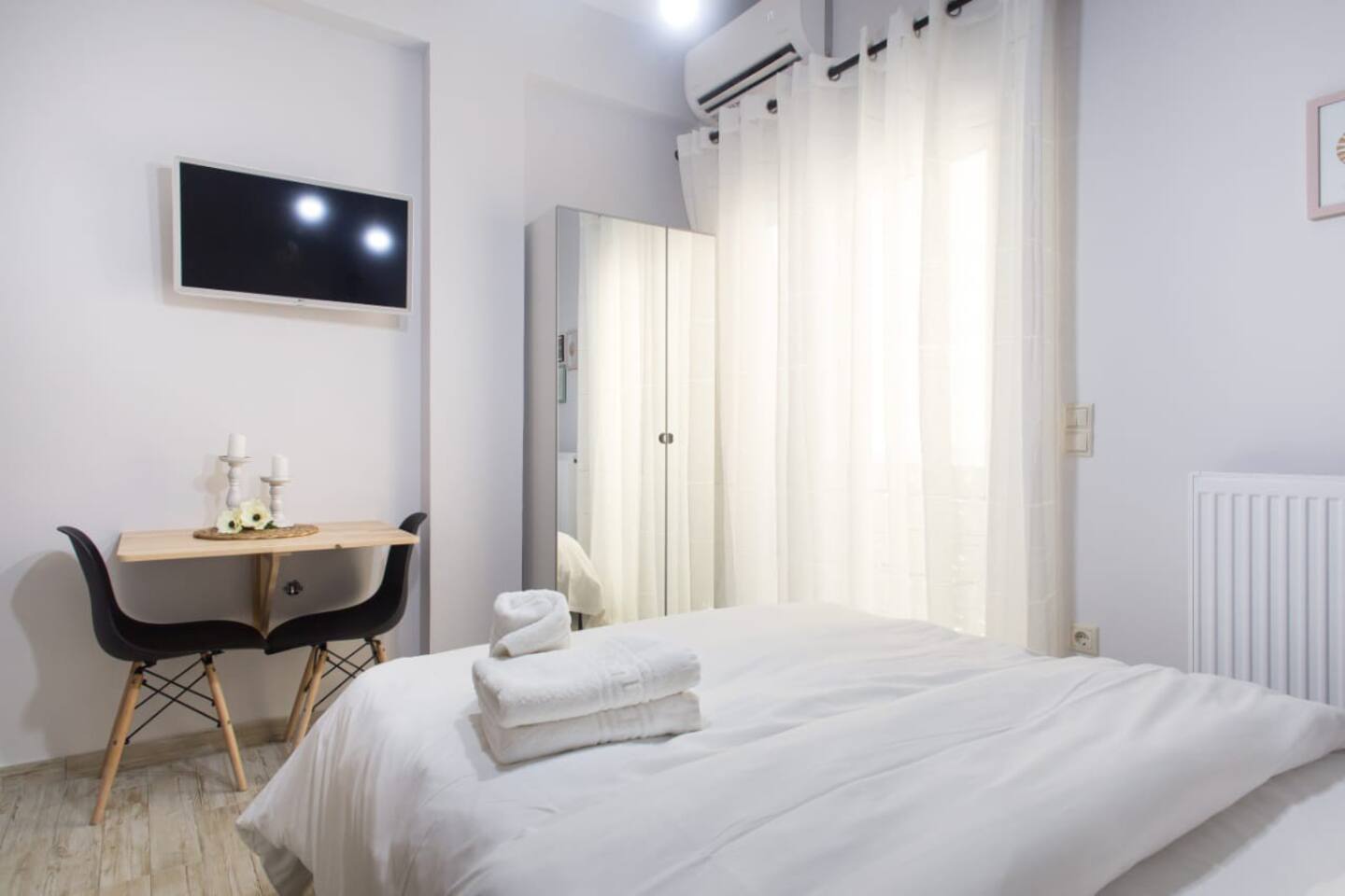 The bathroom has 24h hot water, a 2in1 shampoo/shower gel combo, hand soap, 1 bath towel and 1 guest towel per person. The kitchen includes a fridge/freezer, a microwave and gas hobs. Also included will be a starter pack of Greek coffee powder, sugar, salt, pepper and olive oil. In the summer months, blankets are not provided. Instead, we provide a sheet covering. This is common practice in Greece during the summer. The flat is equipped with A/C and a thermostat. In the wardrobe you ‘ll find hangers, an iron and a hair dryer. We have tested the WiFi 🛜 to a confirmed speed of up to 10Mbps.