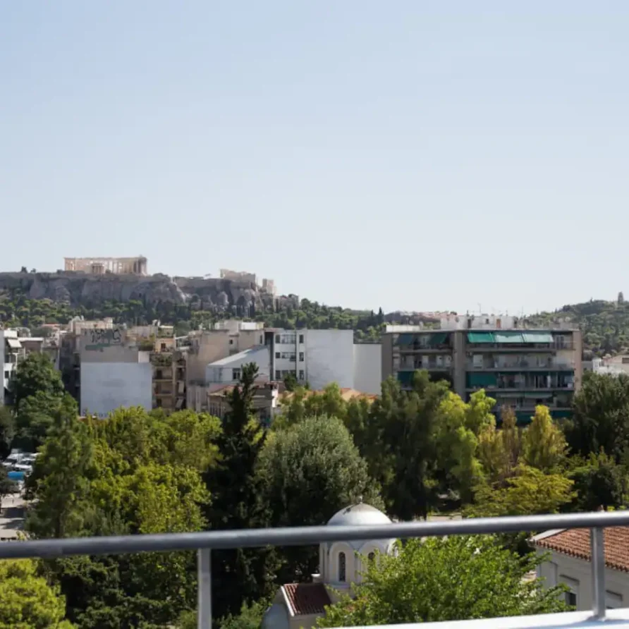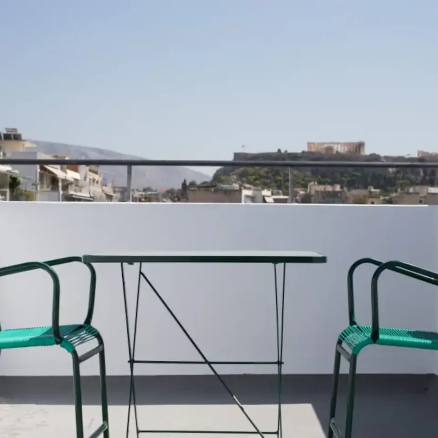 There ‘s a tiny private balcony so you can grab some fresh air. On the ground floor of the building you ‘ll find a shared washing machine (€4 per use). Take the 1st lift to the top floor to experience our spectacular communal rooftop terrace where you can gaze at an all-embracing Acropolis, Mount Lycabettus and the rest of Athens below!