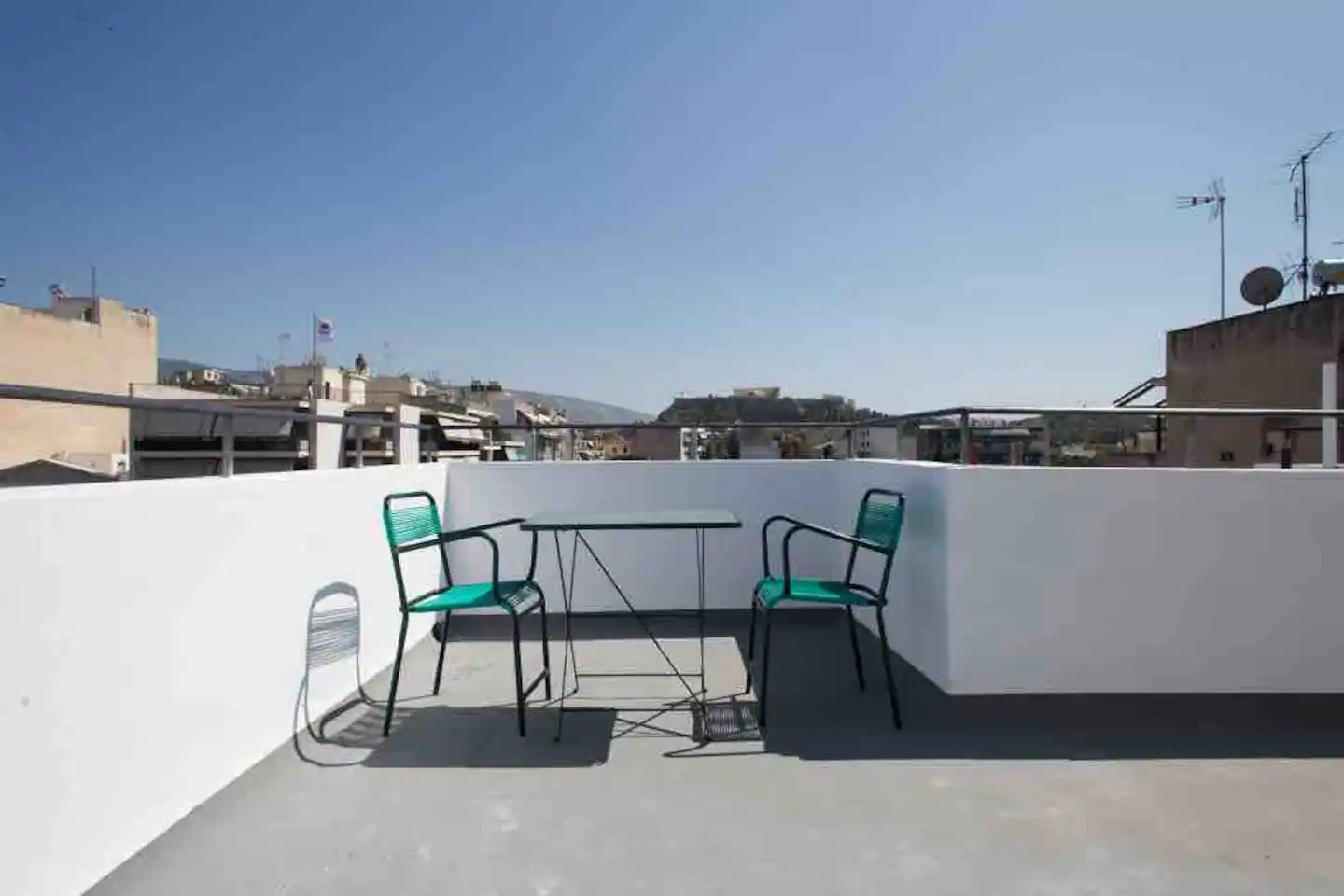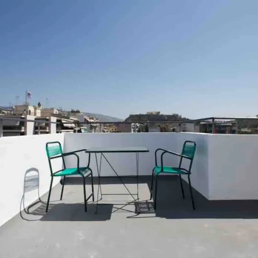 On the ground floor of the building you ‘ll find a shared washing machine (€4 per use). Take the 1st lift to the top floor to experience our spectacular communal rooftop terrace 🔝 where you can gaze at an all-embracing Acropolis, Mount Lycabettus and the rest of Athens below!