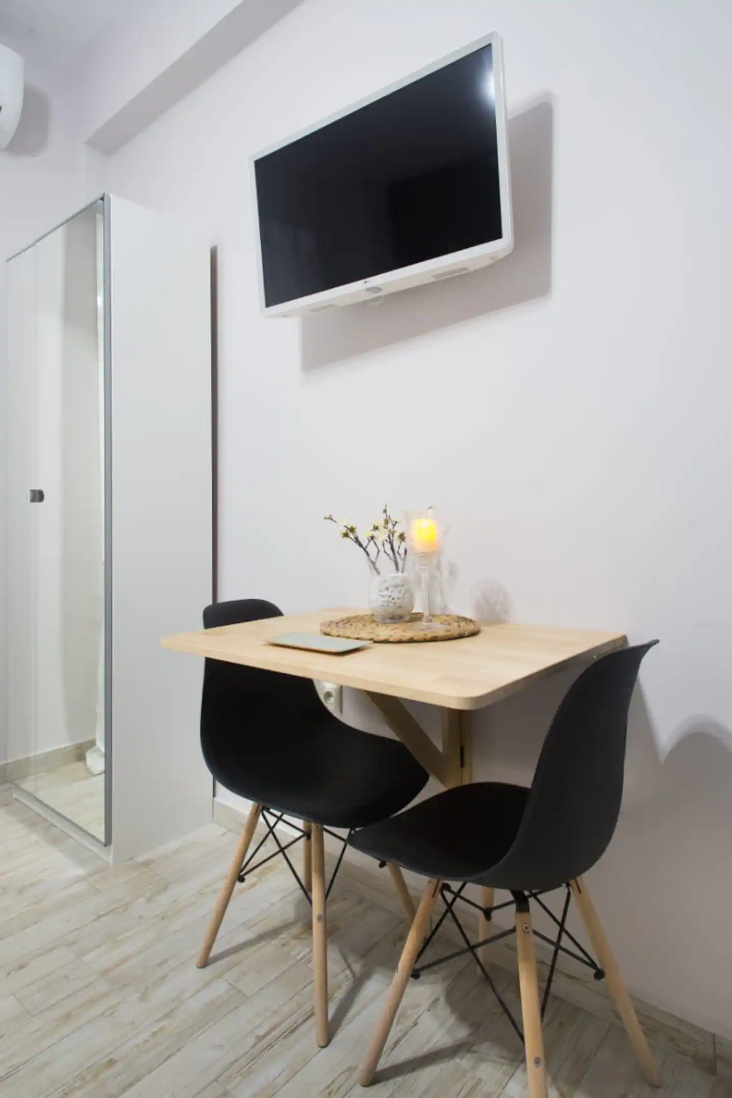 - Amenities: 32" HDTV with Netflix, Carbon Monoxide Alarm, Clothes Storage: Wardrobe, Coffee maker: Nespresso, Cot – Available Upon Request, Essentials, Fire Extinguisher, First Aid Kit, Free On-Street Parking, Freezer, Fridge, Hair Dryer, Hangers, High Chair – Available Upon Request, Hot Water, Iron, Kettle, Lift, Lockbox, Long-Term Stays Allowed, Luggage Drop-off Allowed, Microwave, Paid Car Park Off Premises, Room-darkening Blinds, Self Check-In, Shampoo, Shared Terrace, Shower Gel, Smoke Alarm, Wi-Fi, Window AC Unit, Wine Glasses
