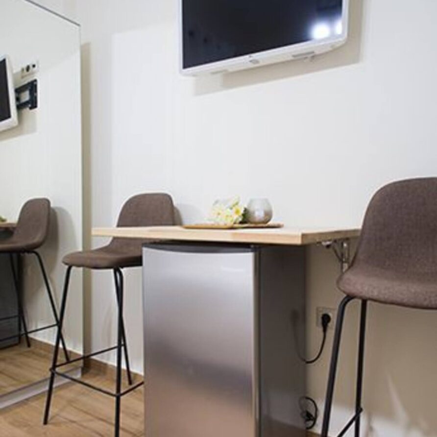 On the ground floor of the building you ‘ll find a shared washing machine (β¬4 per use). Take the 1st lift to the top floor to experience our spectacular communal rooftop terrace where you can gaze at an all-embracing Acropolis, Mount Lycabettus and the rest of Athens below!