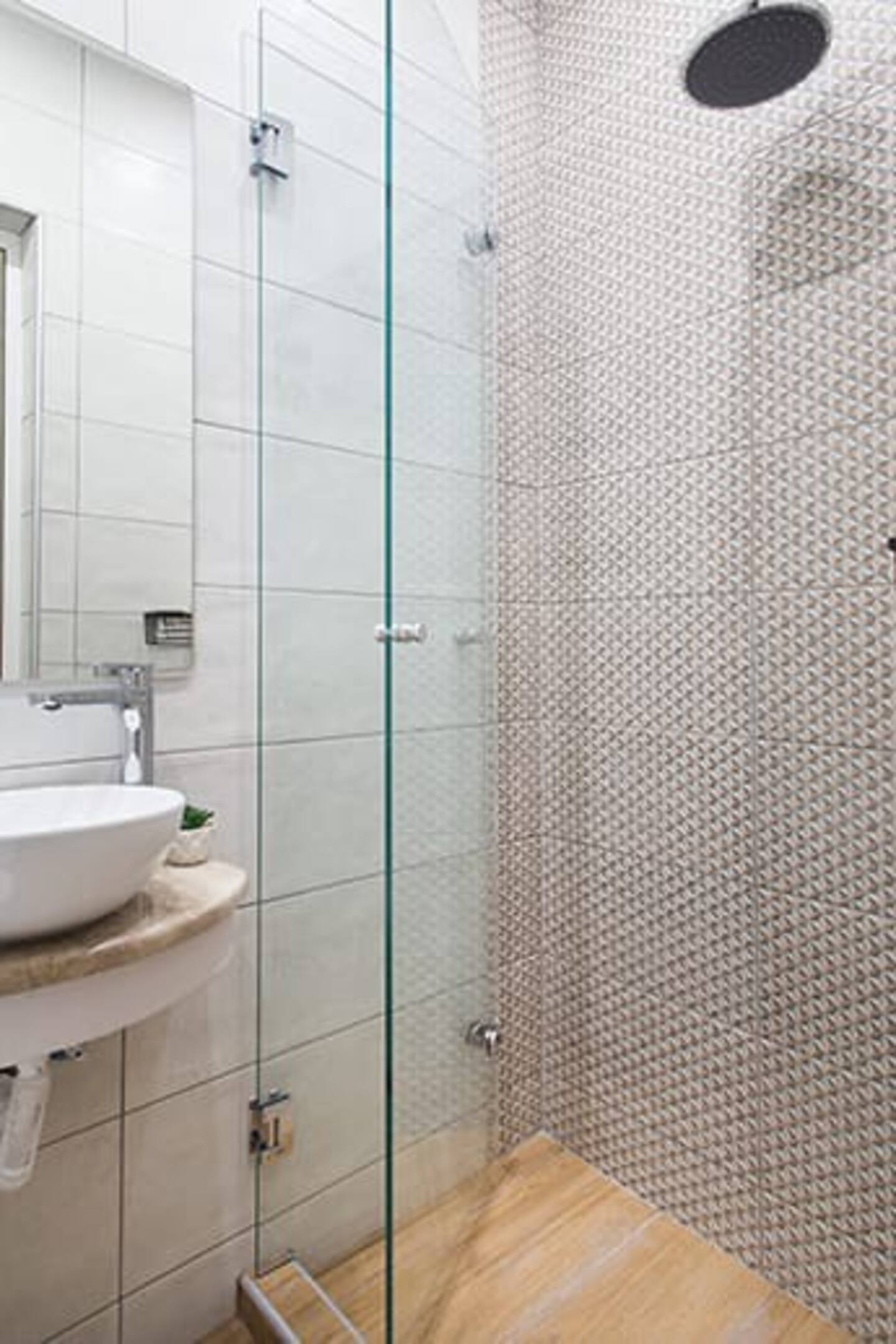 The bathroom has 24h hot water, a 2in1 shampoo/shower gel combo, hand soap, 1 bath towel and 1 guest towel per person. The kitchen includes a fridge/freezer, a microwave and gas hobs. Also included will be a starter pack of Greek coffee powder, sugar, salt, pepper and olive oil. In the summer months, blankets are not provided. Instead, we provide a sheet covering. This is common practice in Greece during the summer. The flat is equipped with A/C and a thermostat. In the wardrobe you ‘ll find hangers, an iron and a hair dryer. We have tested the WiFi π to a confirmed speed of up to 12Mbps.