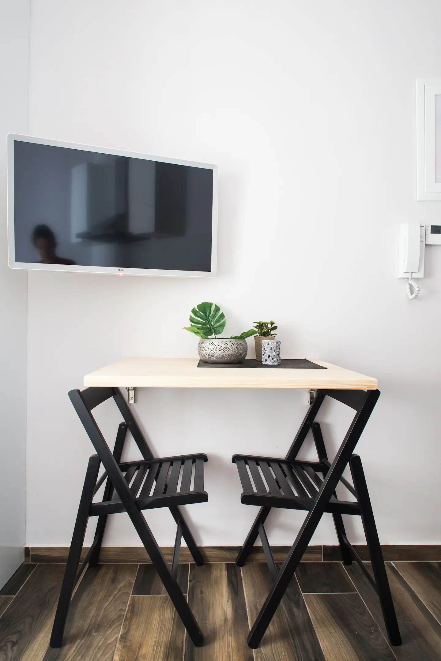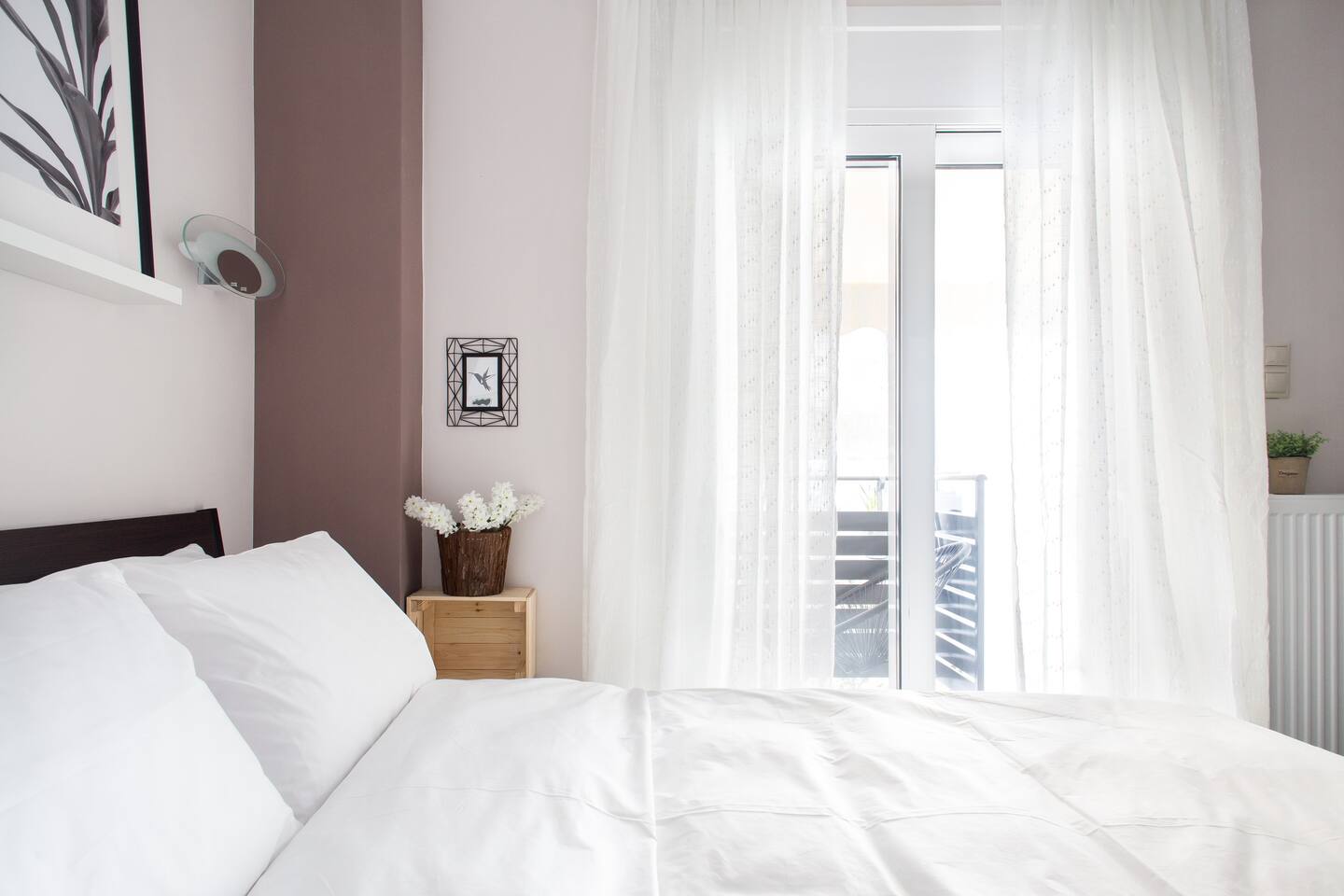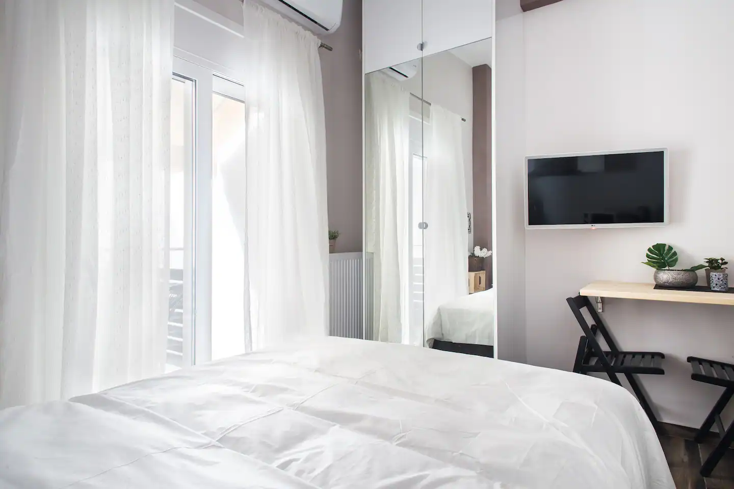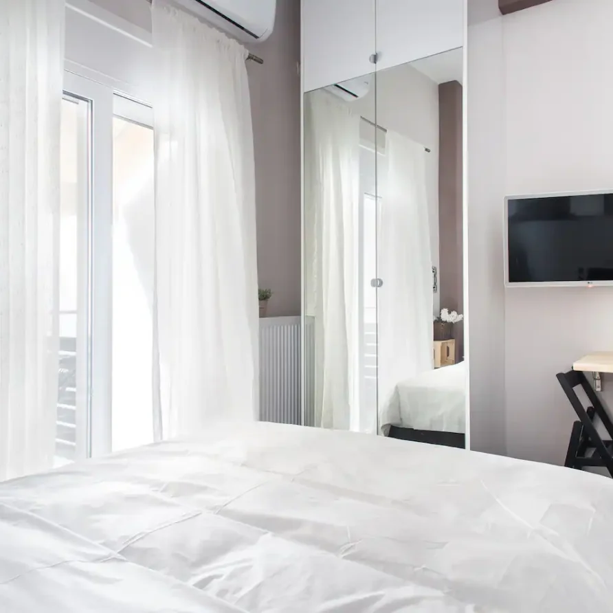 The bathroom has 24h hot water, a 2in1 shampoo/shower gel combo, hand soap, 1 bath towel and 1 guest towel per person. The kitchen includes a fridge/freezer, a microwave, electric hobs and a NESCAFÉ® Dolce Gusto coffee maker (capsules are not provided). Also included will be a starter pack of Greek coffee powder, sugar, salt, pepper and olive oil. In the summer months, blankets are not provided. Instead, we provide a sheet covering. This is common practice in Greece during the summer. The flat is equipped with A/C and a thermostat. In the wardrobe you ‘ll find hangers, an iron and a hair dryer. We have tested the WiFi 🛜 to a confirmed speed of up to 9Mbps.