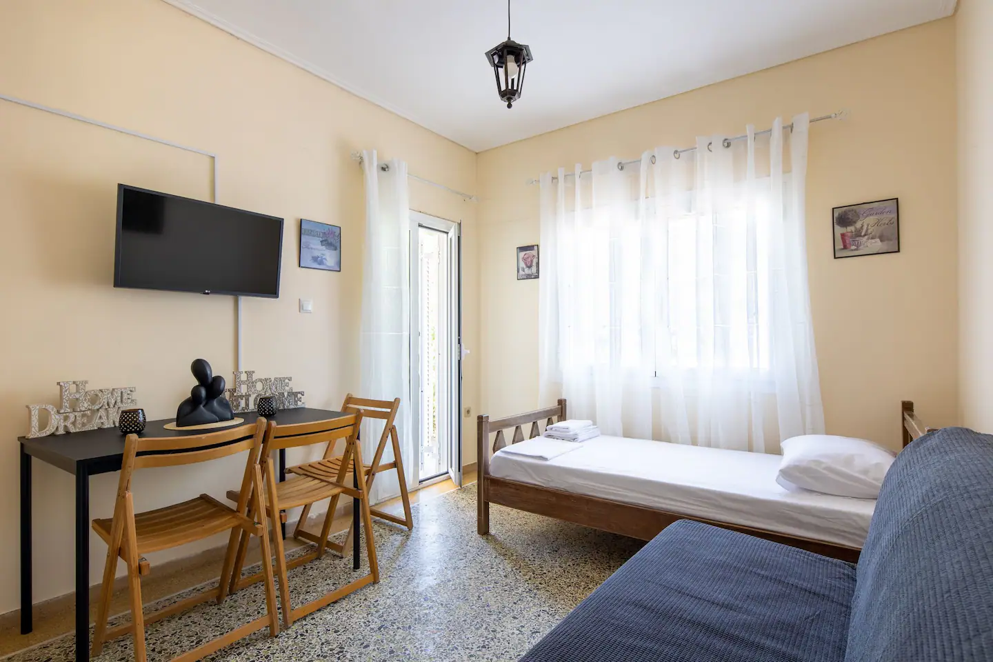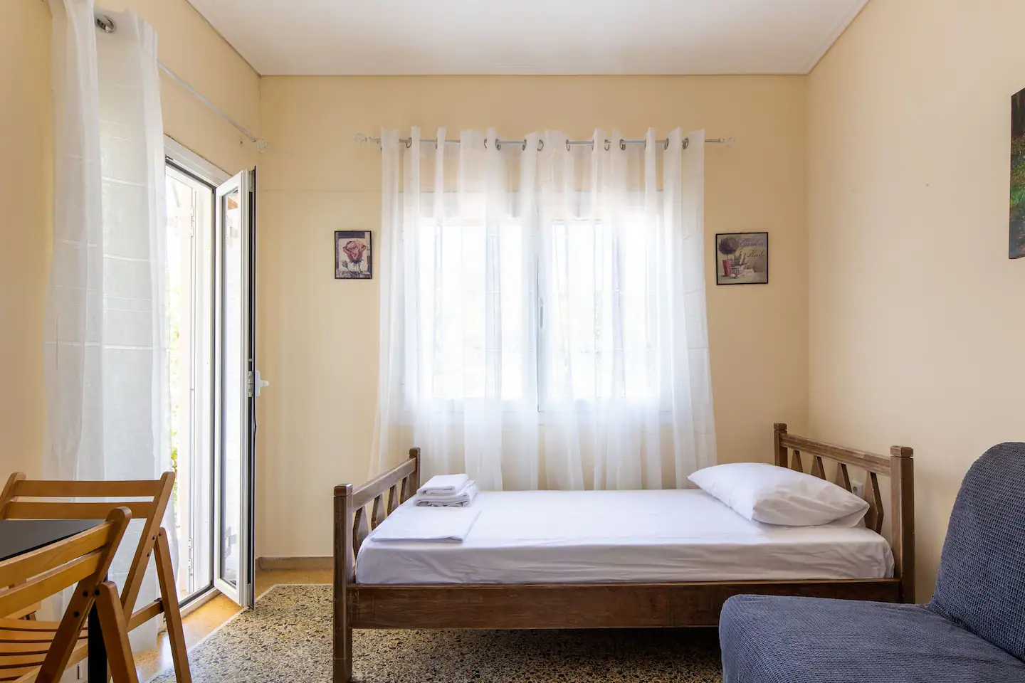 We spontaneously decided to reserve the place at the day before our stay and oh, was it the right decision! The host was incredibly quick to cooperate, and once we were accommodated, we were fascinated by how quaint and lovely the place was. Everything was clean and tidy, worked as advertised and just felt like home! The home has a lovely garden with delicious treats, as long as you pick the correct time for their ripeness. The supermarket is literally the adjacent building, full of mouth-watering greek products and delectable fruits. The beach is quite close, only a few minutes away on foot and even quicker by car (the house has a drive through). The beach has a parking, showers and restrooms and beautiful water. All the other beaches in the area are spectacular as well, so checking them out was definitely not a mistake. There is an incredible gyros place a mere minute away. Surely one of our best vacations, absolutely would recommend and come back again!
