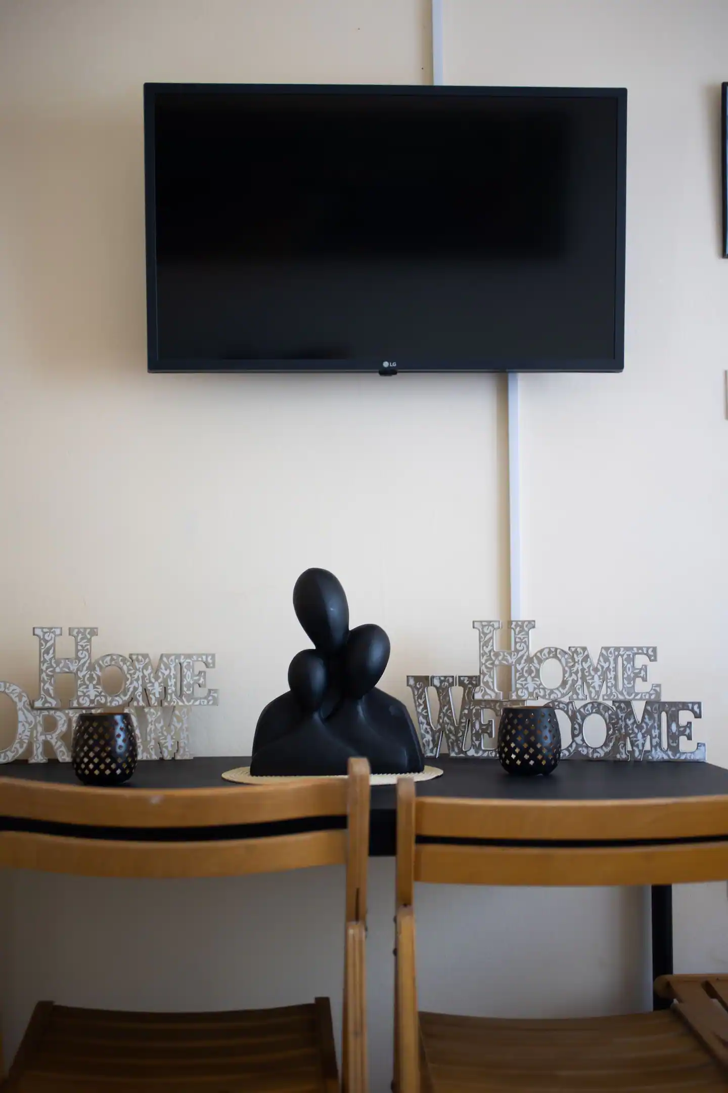 - Amenities: 32" HDTV with Netflix, Clothes Storage: Wardrobe, Essentials, Free On-Street Parking, Hair Dryer, Hangers, Hot Water, Iron, Lockbox, Long-Term Stays Allowed, Private Balcony, Room-darkening Blinds, Self Check-In, Shampoo, Shower Gel, Wi-Fi, Window AC Unit