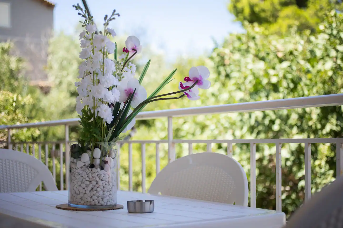 Sokol’s place is lovely, tucked away from noise , people and yet near everything, restaurants, supermarkets , buses and beautiful beaches. It’s a nice environment, a big garden with a lot of flowers, olive, orange, pistachio and fig trees. It has a barbecue facility outside where you can have a wonderful barbecue. We stayed there one week, it was fantastic! Thank you Sokol. Jocelina