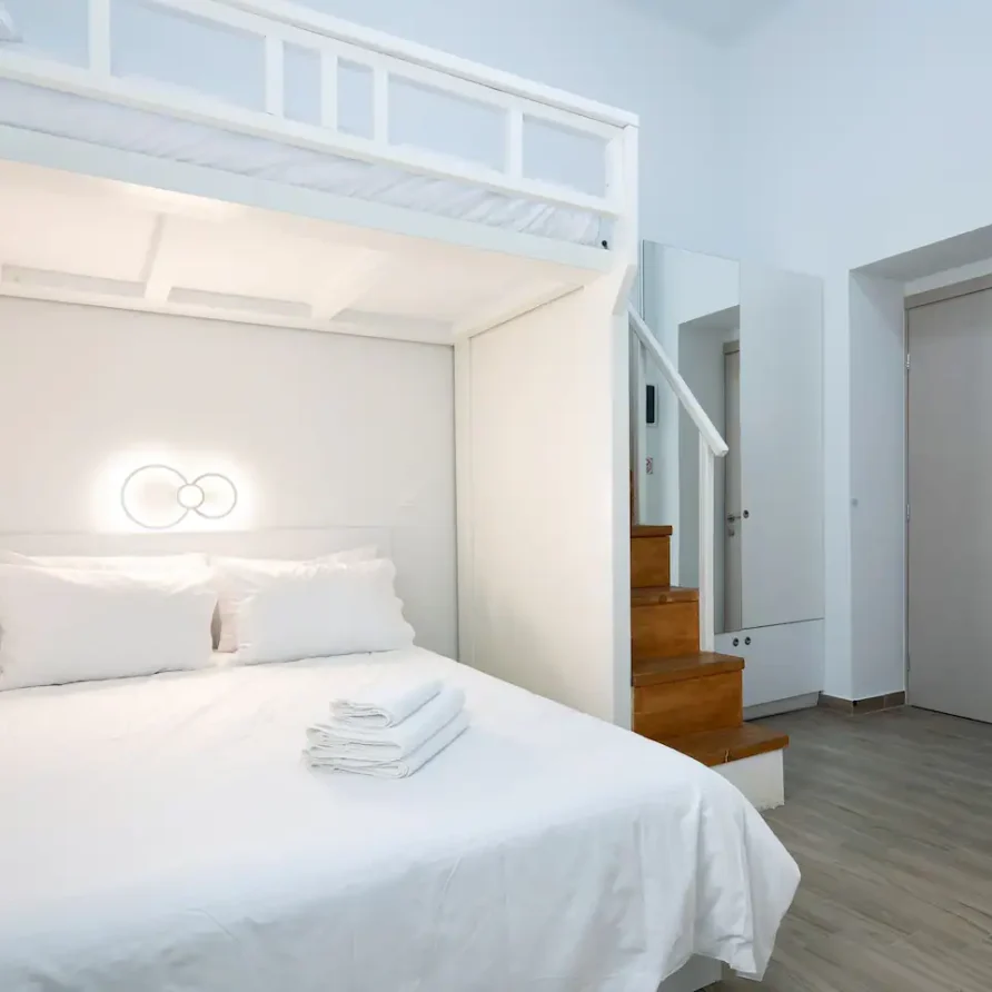 Our gorgeous listing has been created using traditional design cues from the eponymous island. On the ground floor of the building you ‘ll find a shared washing machine (€5 per use). The dryer is free. On the top floor you can experience our lovely communal terrace, including a fully equipped kitchen 🍳!