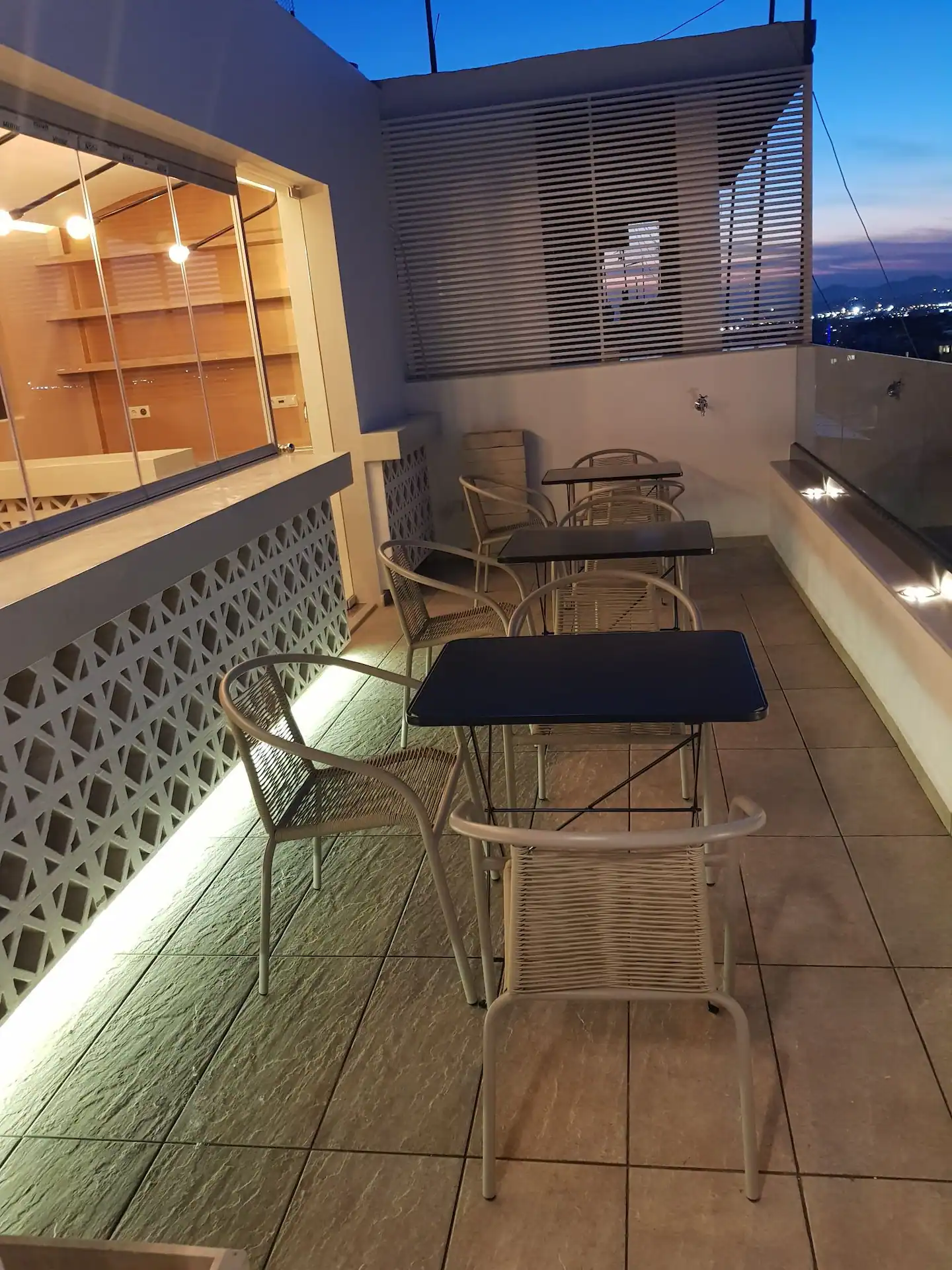 - Amenities: 32" HDTV with Netflix, Carbon Monoxide Alarm, Clothes Storage: Wardrobe, Coffee, Coffee maker: Nespresso, Cot – Available Upon Request, Essentials, Fire Extinguisher, First Aid Kit, Freezer, Fridge, Hair Dryer, Hangers, High Chair – Available Upon Request, Hot Water, Iron, Kettle, Lift, Lockbox, Long-Term Stays Allowed, Luggage Drop-off Allowed, Microwave, Paid Car Park Off Premises, Room-darkening Blinds, Self Check-In, Shampoo, Shared Terrace, Shower Gel, Smoke Alarm, Wi-Fi, Window AC Unit, Wine Glasses