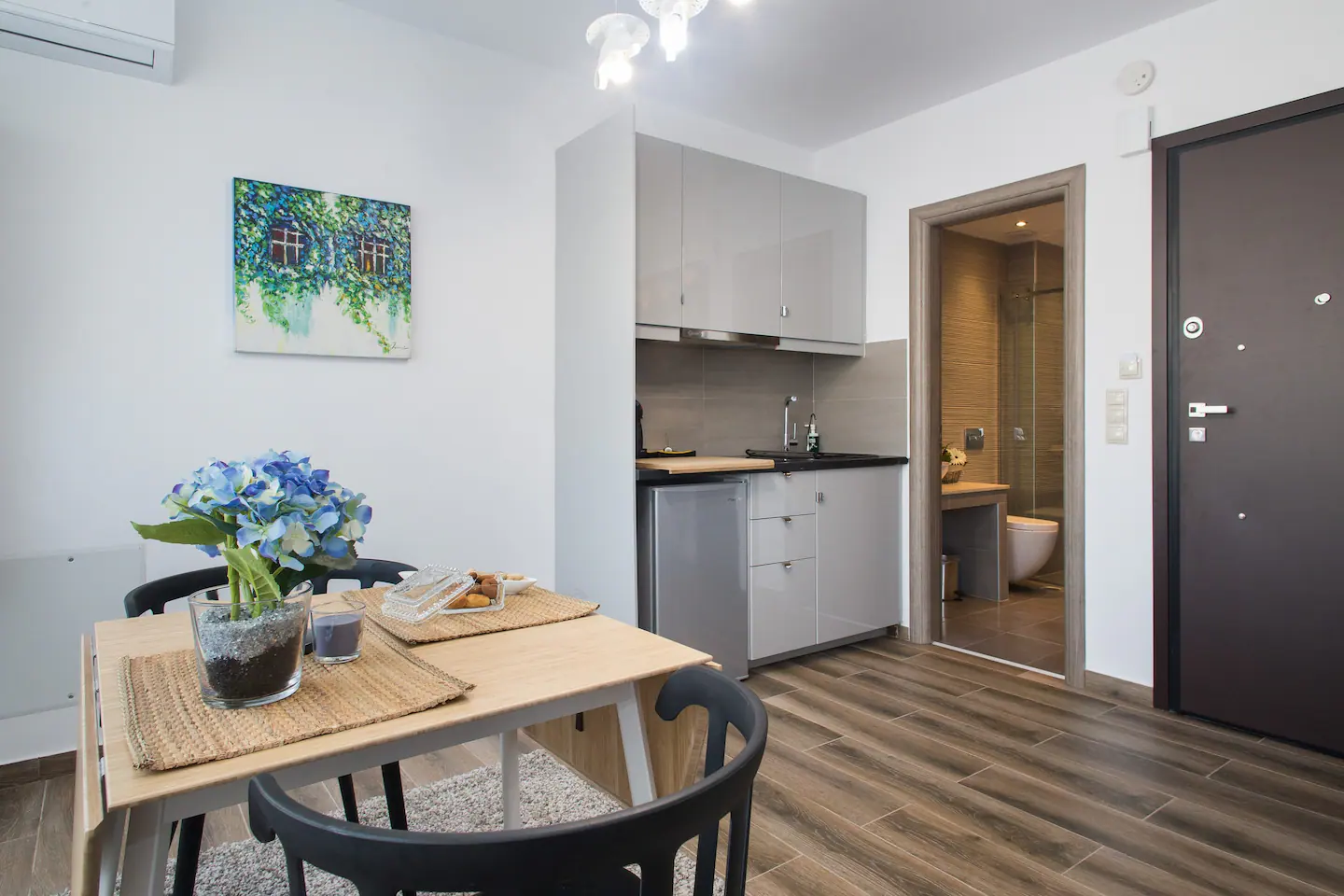 As usual when booking on line you count on reviews and the honesty of your host. When I arrived by taxi from a ride pre arranged from these hosts, the driver made sure I knew exactly where I was. All check in instructions were super clear with pictures. Everything was squeaky clean which I appreciate. It is small but perfect for 1-2 people. The shower worked well, water hot, bed comfy. The hosts made some recommendations that were very important to start to get oriented. Although not pretty, the neighborhood is safe and quiet and about a literal five minute walk to the left you are in beautiful Monastiraki and you have beauty and great food and everything you need. The hosts were quick to respond. Although I did not have any issues with the accommodations, I did need help with directions or transportation and my issues were always resolved. I would definitely rent again from these hosts. They were kind and respectful and never made me feel like I was bothering them