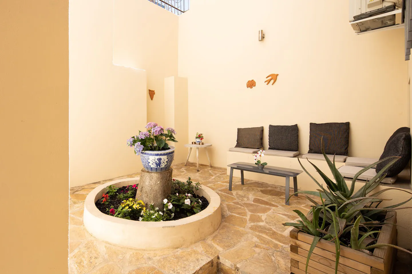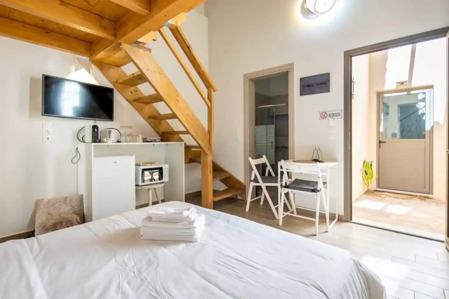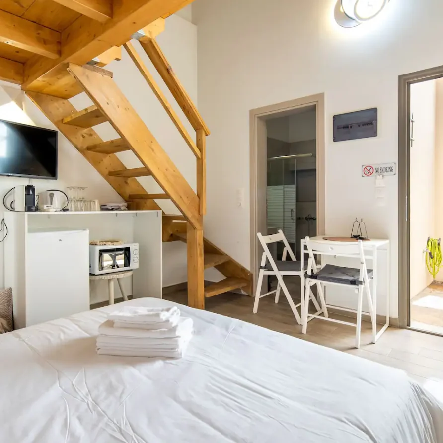 Our gorgeous listing has been created using traditional design cues from the eponymous island. There ‘s a fantastic allocated garden space only for your listing so you can soak in some sunlight! On the ground floor of the building you ‘ll find a shared washing machine (€5 per use). The dryer is free. On the top floor you can experience our lovely communal terrace, including a fully equipped kitchen 🍳!