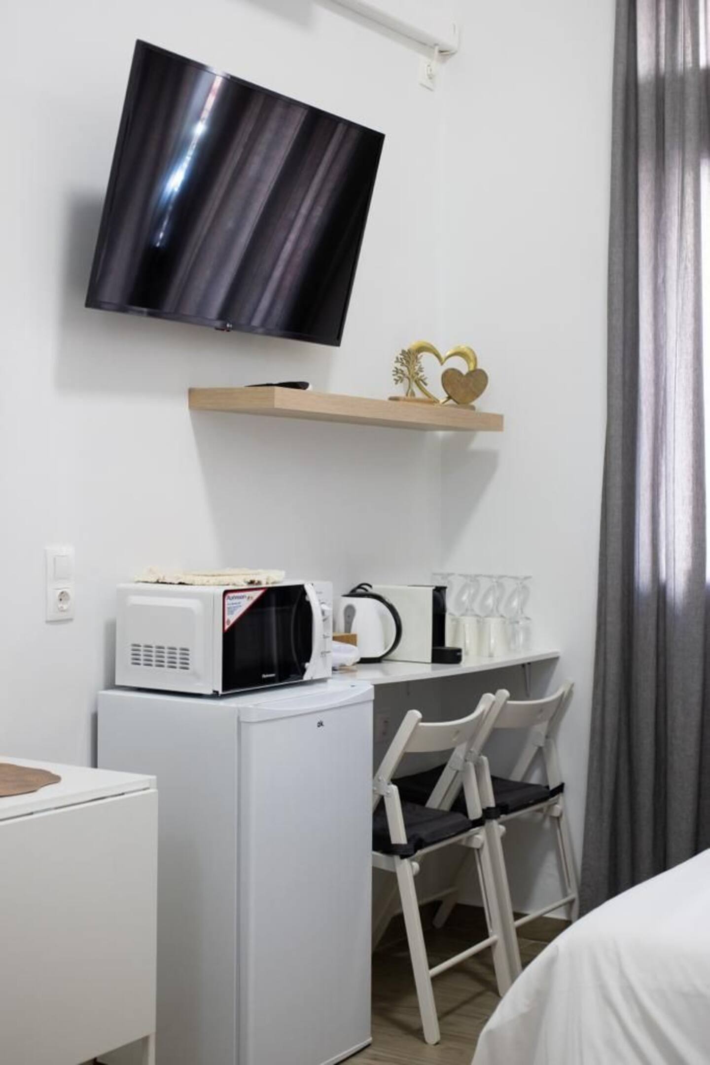 - Amenities: 32" HDTV with Netflix, Clothes Dryer, Clothes Storage: Wardrobe, Coffee, Coffee maker: Nespresso, Essentials, Free On-Street Parking, Freezer, Fridge, Hair Dryer, Hangers, Heating – Split-Type Ductless System, Hot Water, Iron, Paid Car Park Off Premises, Room-darkening Blinds, Shampoo, Shared Terrace, Shower Gel, Wi-Fi