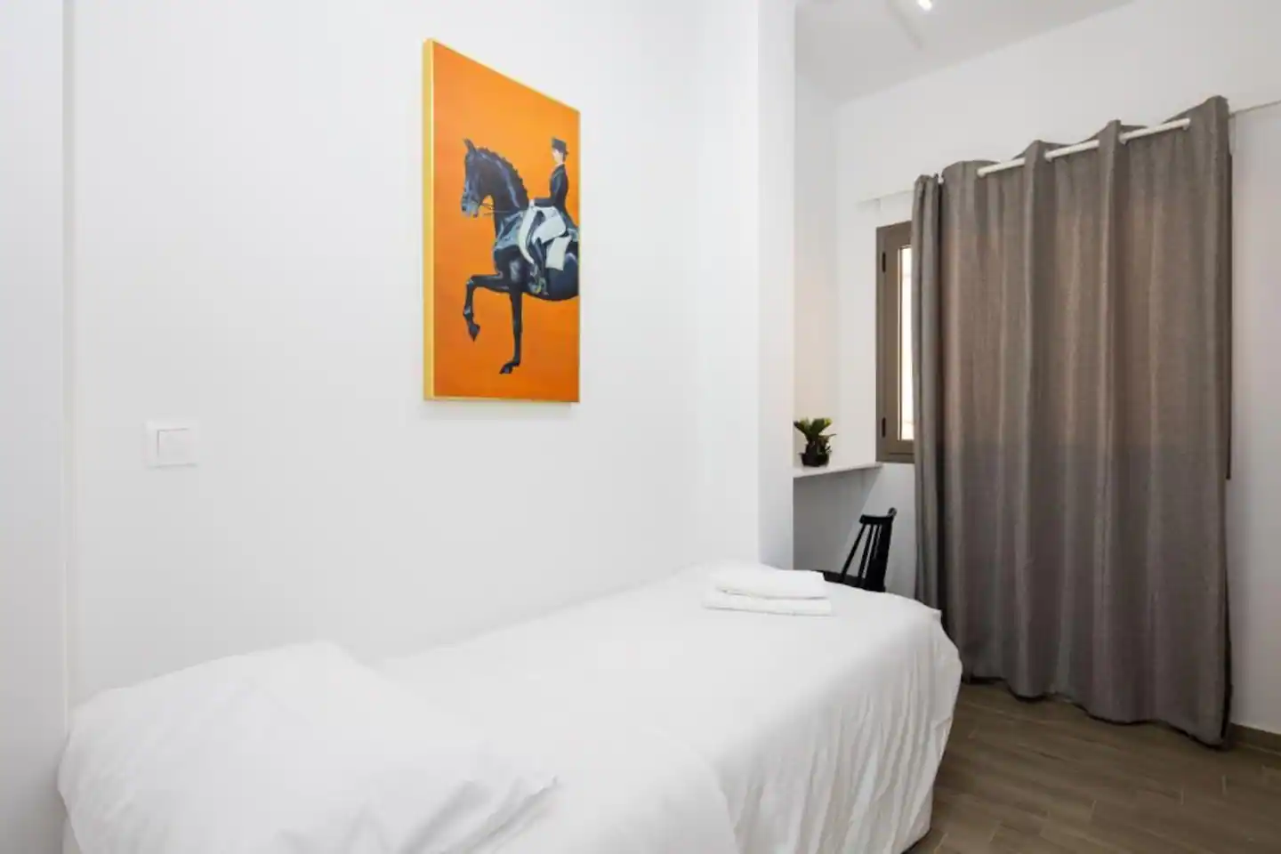 Studio apartment on the 1st floor in the Kerameikos area featuring one King-size bedroom (and a Small single bed in a semi-private narrow space) and a fully equipped bathroom. There ‘s an HDTV (streaming service accounts not provided) and suitable sleeping space for up to 3 people. Only a short walk from Ermou, Monastiraki & Thissio.