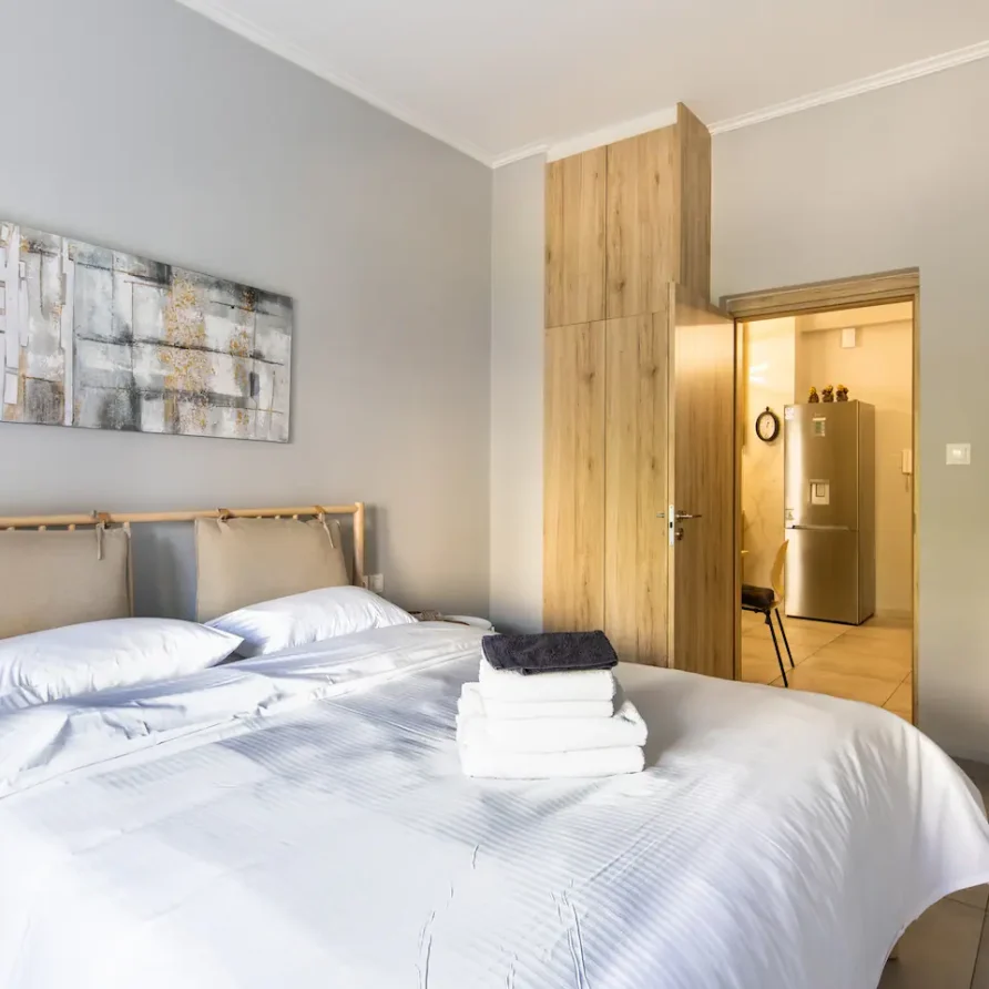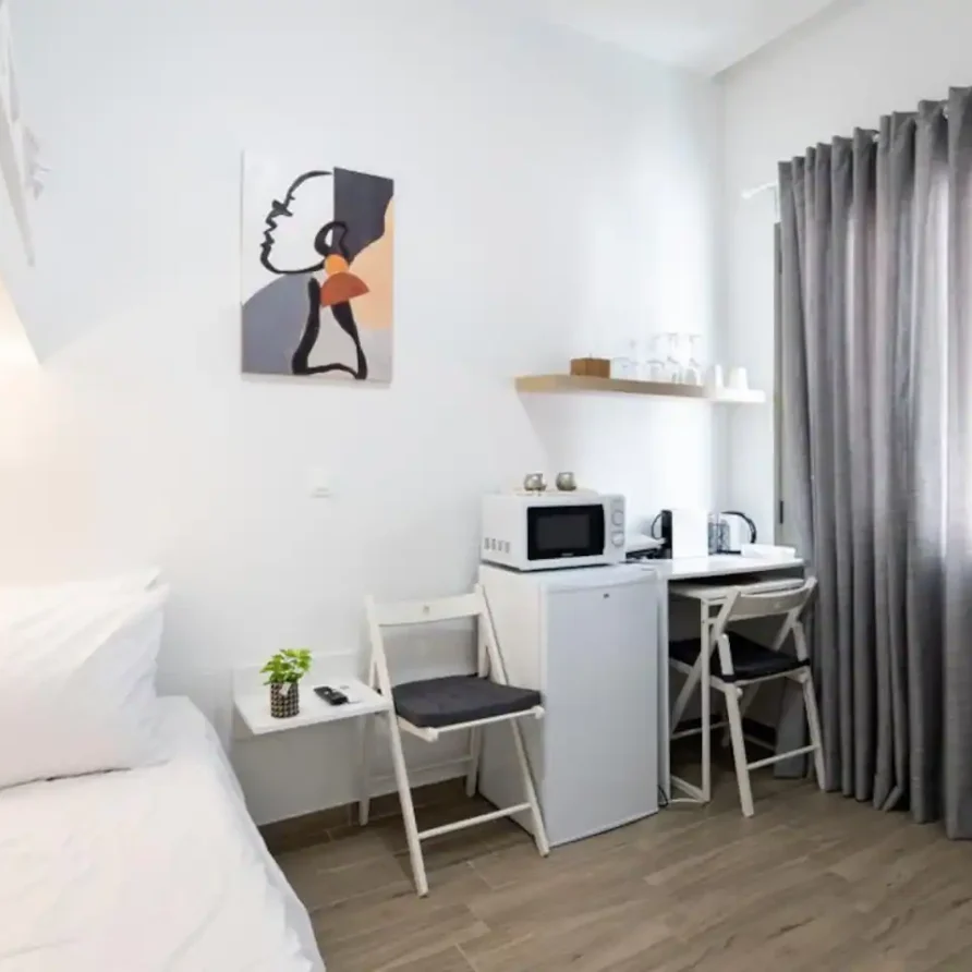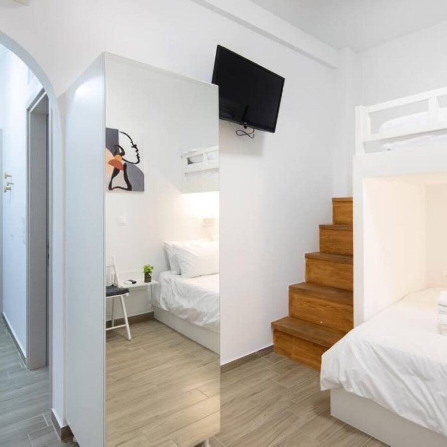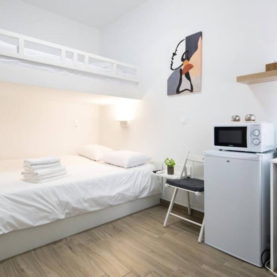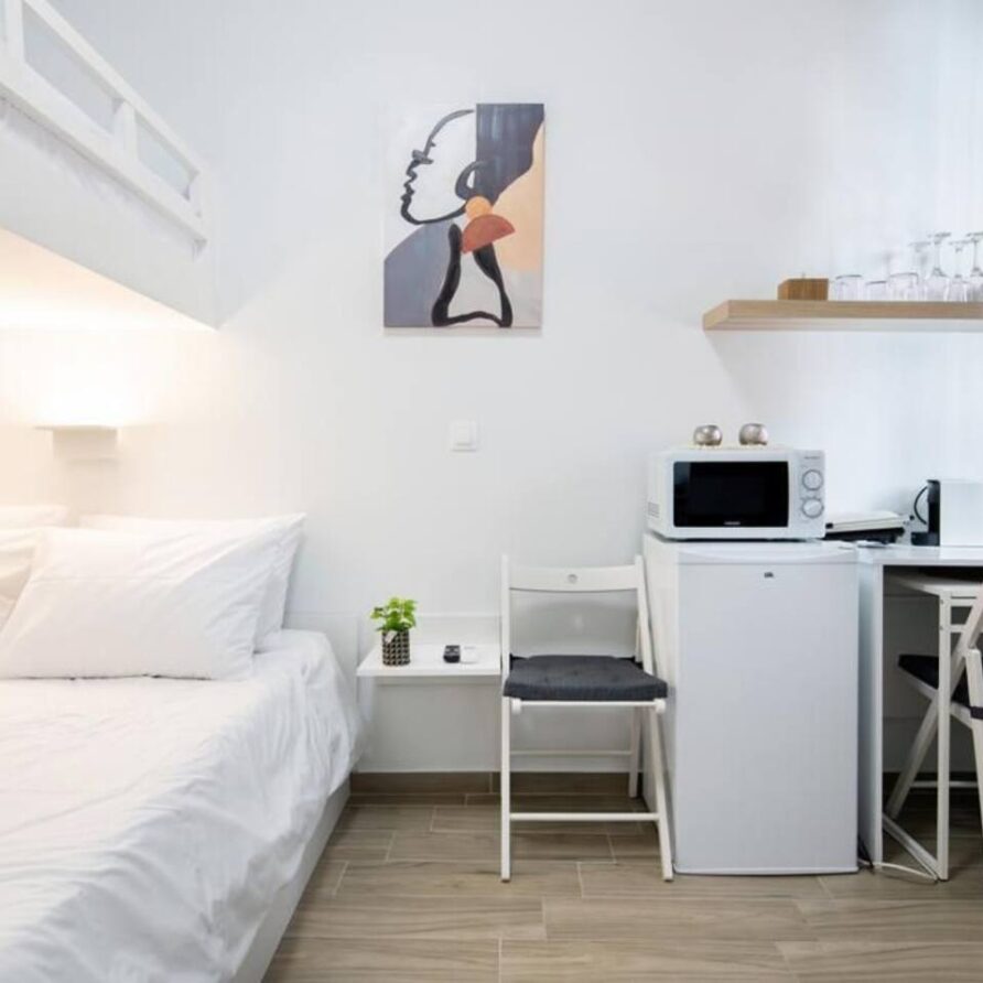 Studio apartment on the 1st floor in the Kerameikos area featuring one King-size bedroom (and a Small single bed in a semi-private narrow space) and a fully equipped bathroom. There ‘s an HDTV (streaming service accounts not provided) and suitable sleeping space for up to 3 people. Only a short walk from Ermou, Monastiraki & Thissio.