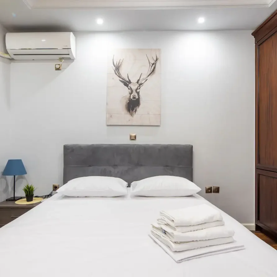 60m² apartment on the 1st floor in the Kerameikos area featuring two King-size bedrooms, a fully equipped bathroom, a full kitchen and a decent sized balcony. There are a total of 2 HDTVs (streaming service accounts not provided). There is suitable sleeping space for up to 4 people. Only a short walk from Ermou, Monastiraki & Thissio.