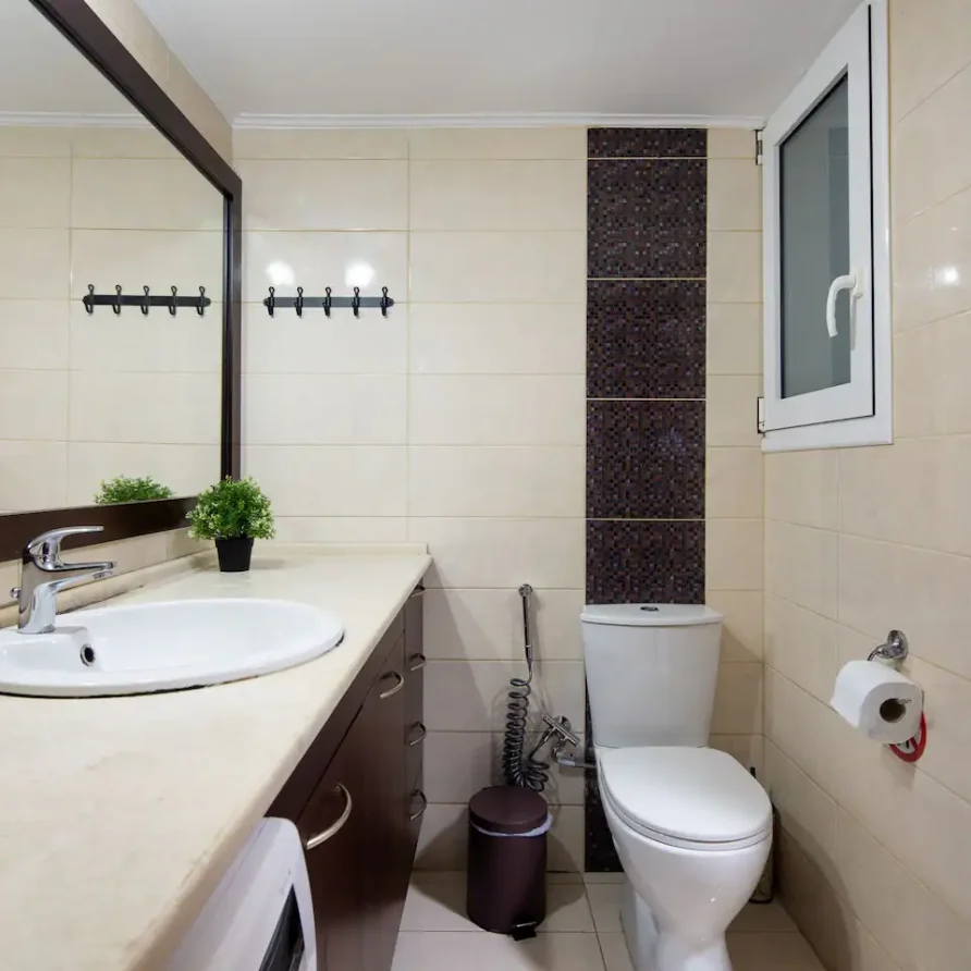 - Amenities: 32" HDTV with Netflix, Clothes Dryer, Clothes Storage: Wardrobe, Essentials, Free On-Street Parking, Hair Dryer, Hangers, Heating – Split-Type Ductless System, Iron, Room-darkening Blinds, Shared Terrace, Shower Gel, Wi-Fi