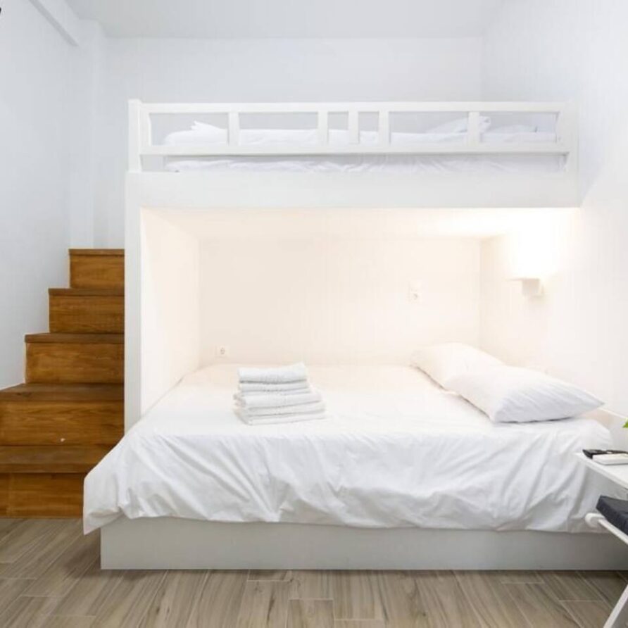 Studio apartment on the 1st floor in the Kerameikos area featuring one King-size bed (and another small double bed overhead on the mezzanine) and a fully equipped bathroom. There ‘s an HDTV (streaming service accounts not provided) and suitable sleeping space for up to 4 people. Only a short walk from Ermou, Monastiraki & Thissio.
